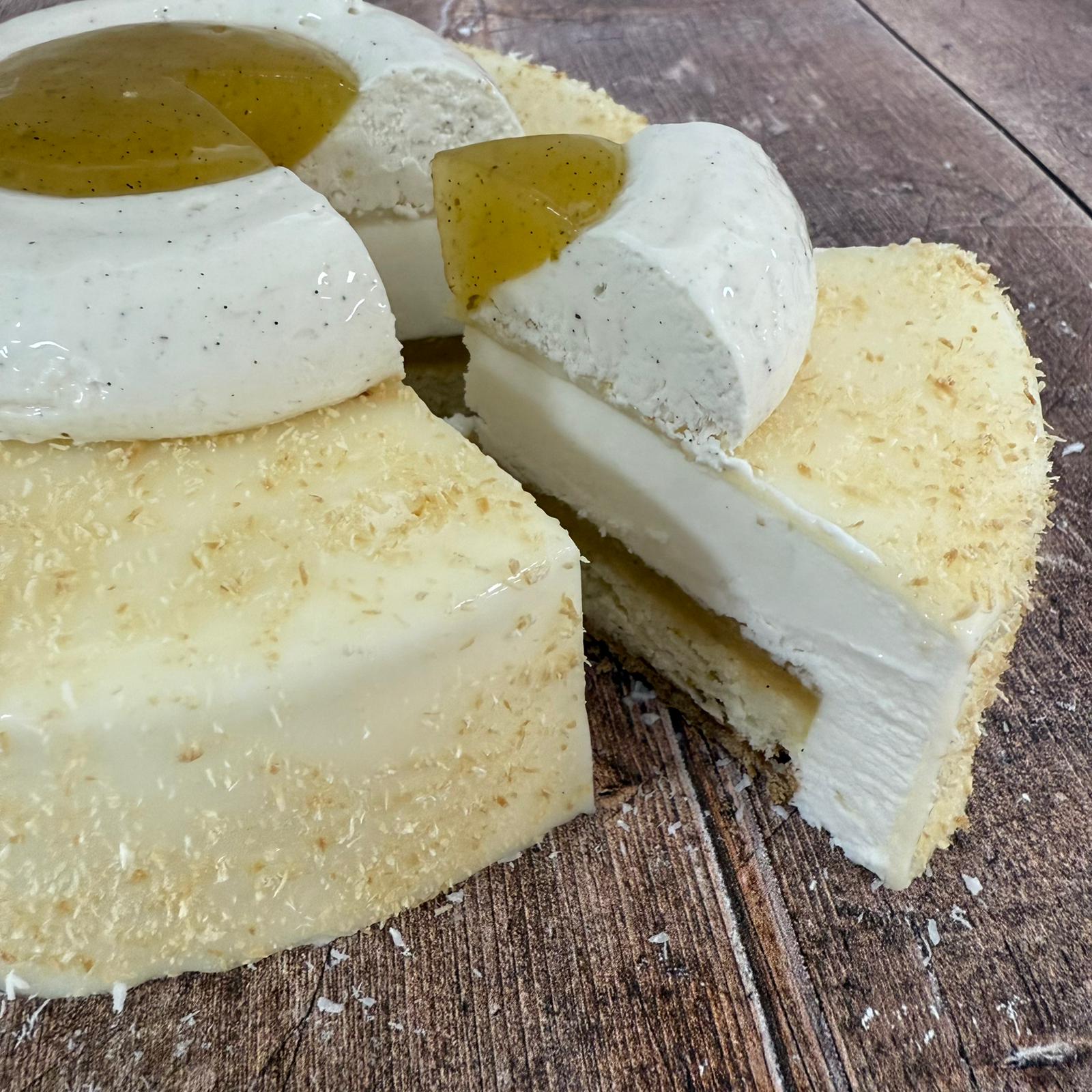 Mousse noix de coco, Confit citron-vert – ananas, Moelleux noix de coco, Croustillant coco